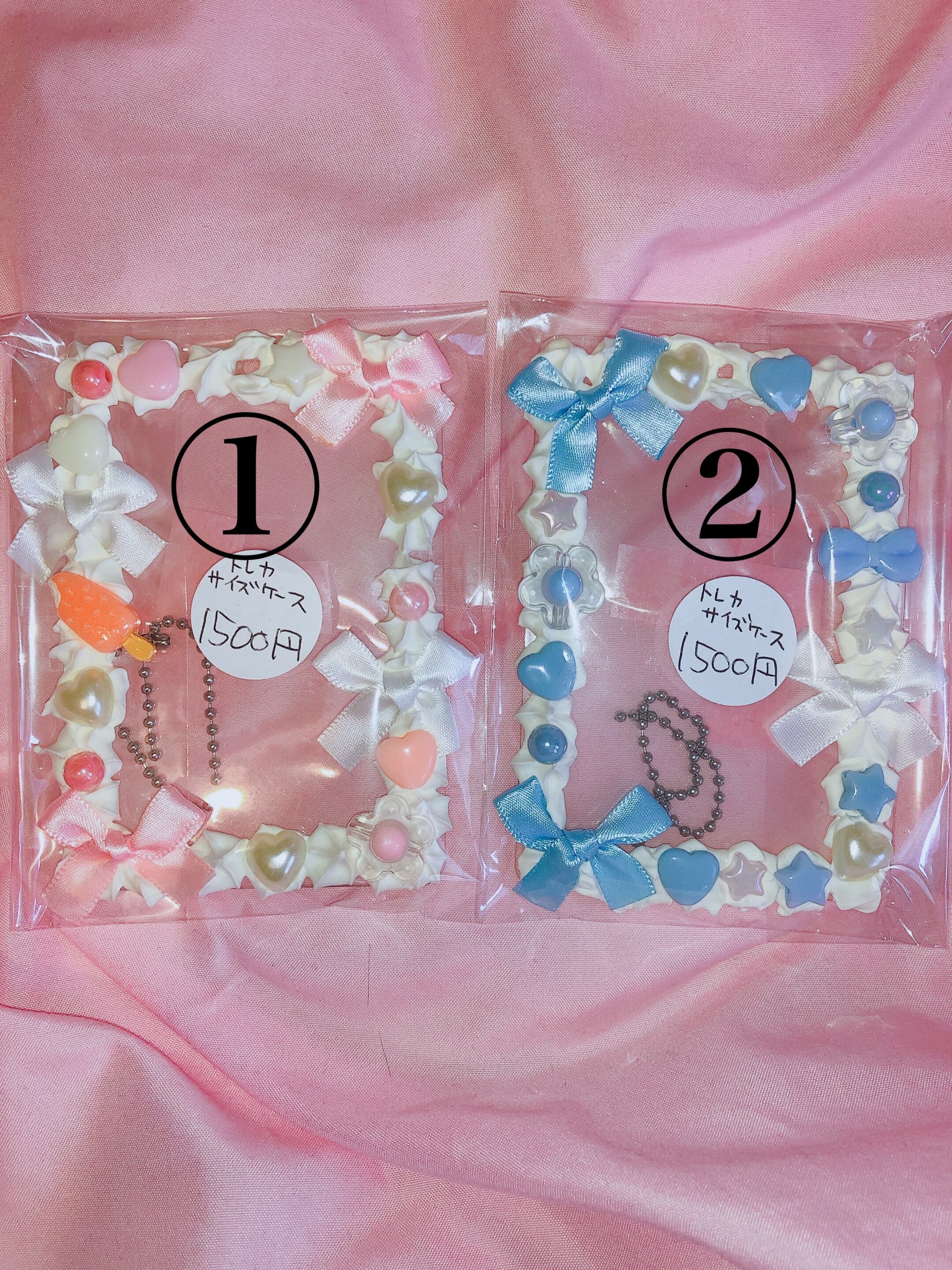 チェキが余裕で入るサイズの手作りケースです。 ①②はトレカサイズになってますがチェキも入るしMAXトレカも入るということです。 よろしくね♪